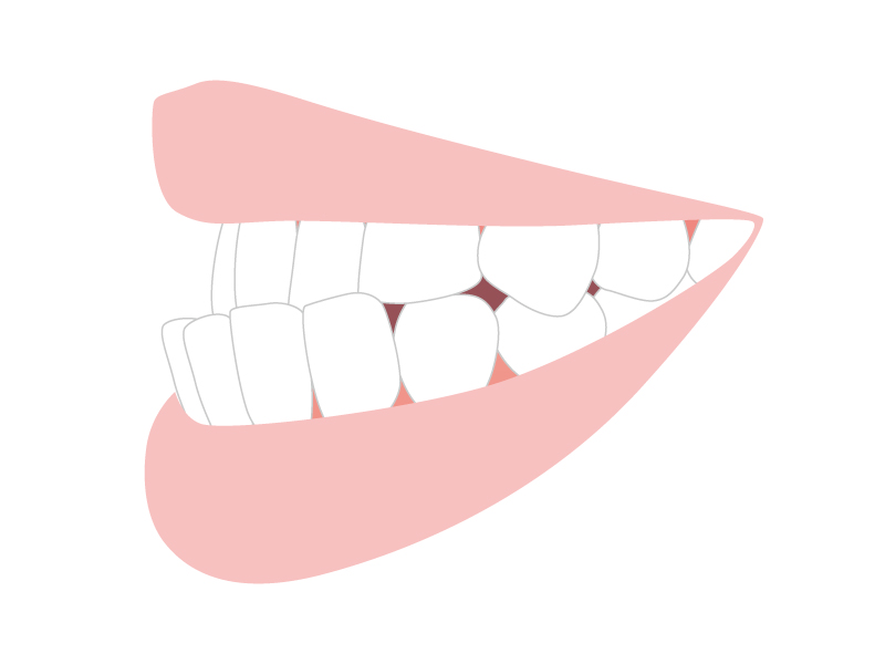 下の歯が上の歯より前に出ている状態です。見た目だけでなく、食べ物のかみ切りにくさや発音への影響も出ることがあります。